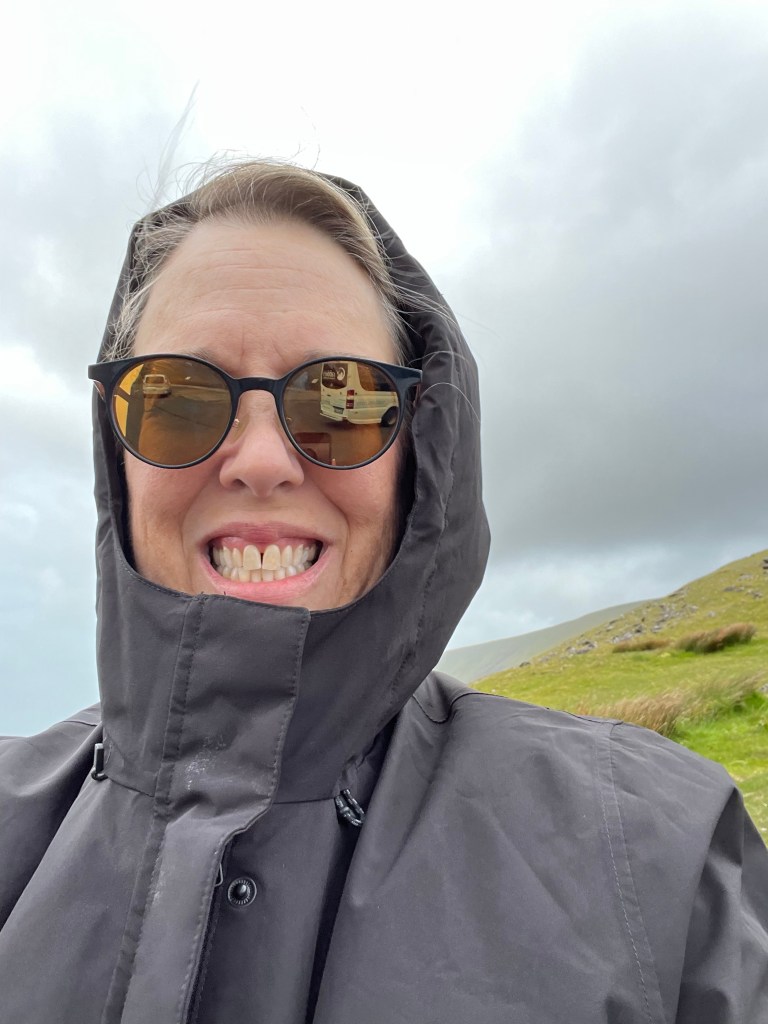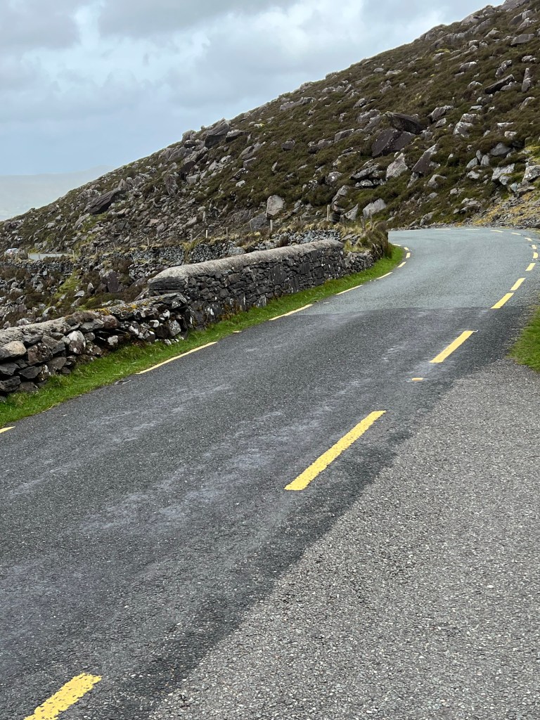 We started off this morning with a lookout stop at the Conor Pass. It was quite blowy and brisk. We are beginning a day with hiking and peaking at the beautiful summits around Dingle